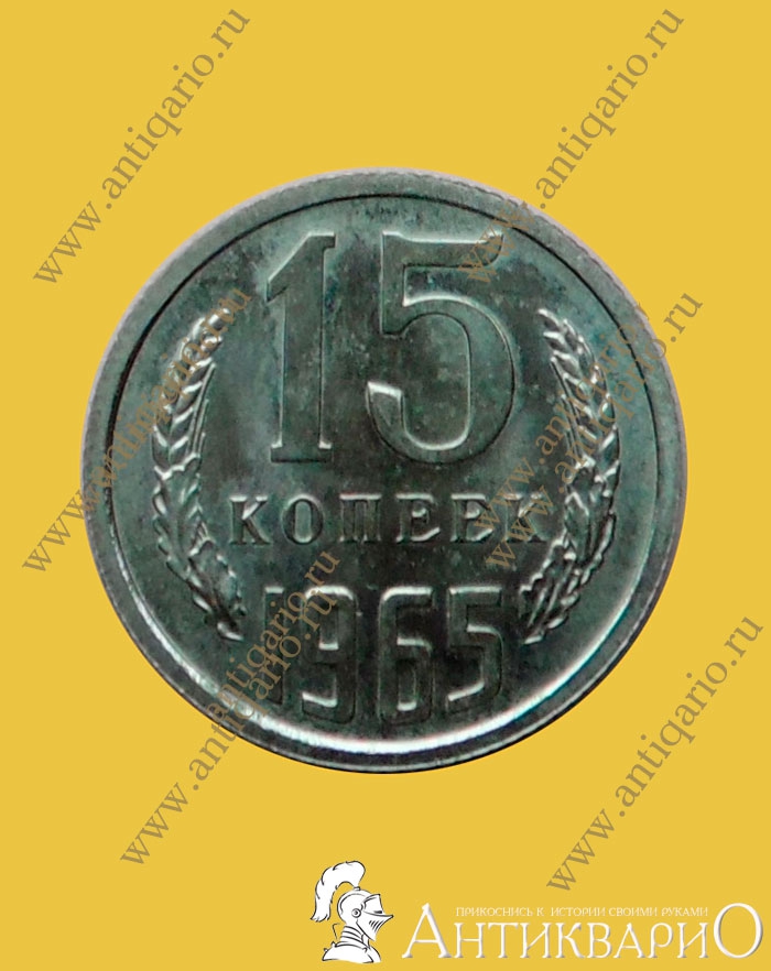 | Эта 15-копеечная монета 1965 года выпуска считается редкой, поэтому нумизматы будут рады такому подарку, особенно, если монета неплохо сохранилась. На лицевой стороне отчеканен веночек. Снизу он начинается дубовыми ветками, а затем перекрывается колосками пшеницы. В самом центре изделия — его номинал. Он располагается чуть выше центральной части, а под ним слово копеек. В самом низу — год выпуска. Оборотная сторона содержит венок, оформленный ленточкой. На ленте можно заметить 15 узлов. Вверху отчеканена звезда, а в самом центре — молот, серп. По самому низу буквы «СССР». О том, сколько экземпляров этого изделия вышло в обращение, неизвестно. |