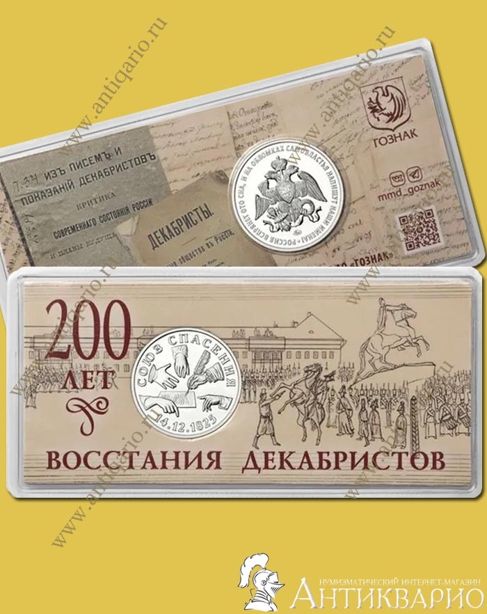 Главная → Монеты → Монетовидные жетоны → Жетоны в блистерах → 200 лет восстания декабристов - ММД, Гознак 2025