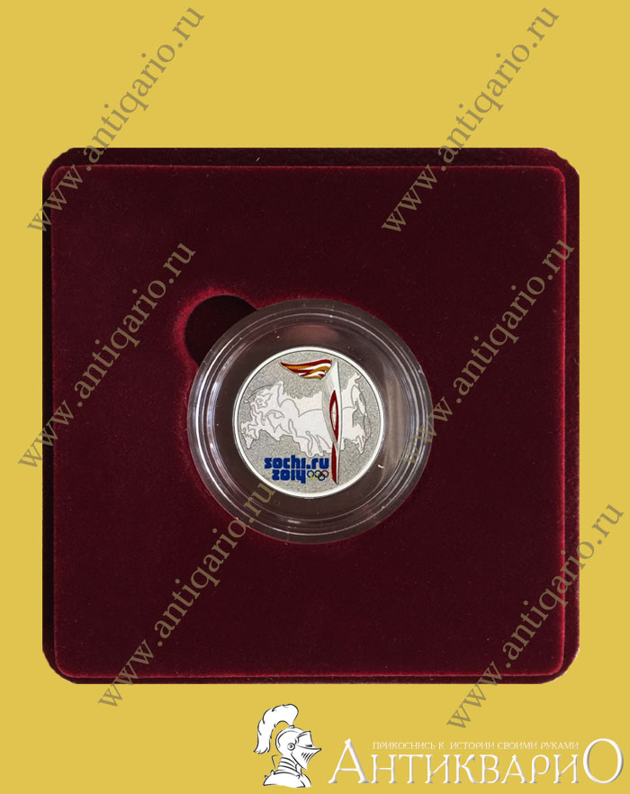 Главная → Монеты → Юбилейные монеты России → Сочи 2014 → 25 рублей Факел в бархатной сувенирной коробочке