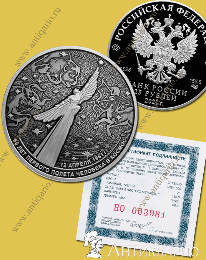 Название: 60 лет первого полета человека в космос - 25 рублей 2021 года / серебро, пруф