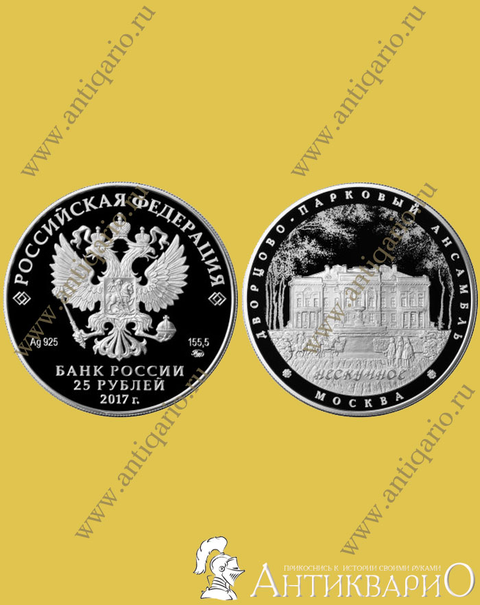 Главная → Монеты → Монеты России из драг. металлов → Памятники архитектуры России → Нескучное, г. Москва - 25 рублей 2017 / серебро, пруф
