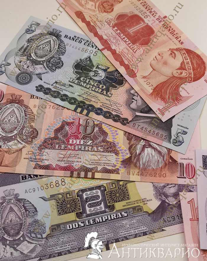 Название: Набор 4 купюры Гондурас: 1, 2, 5 и 10 лемпира