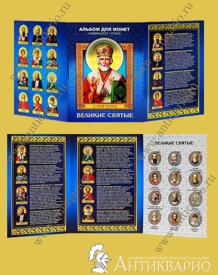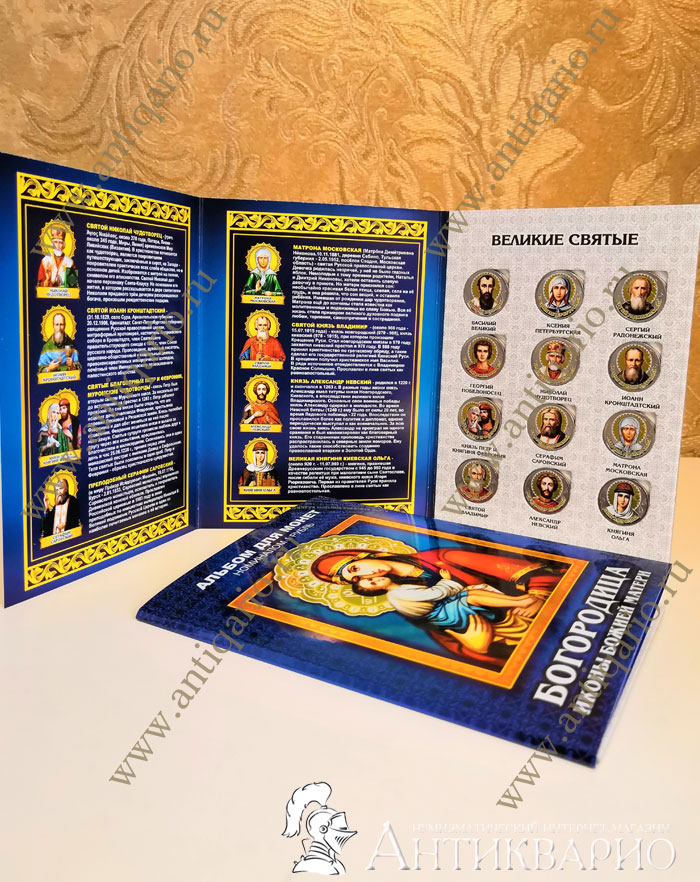 Великие святые - набор монет в тематическом альбоме