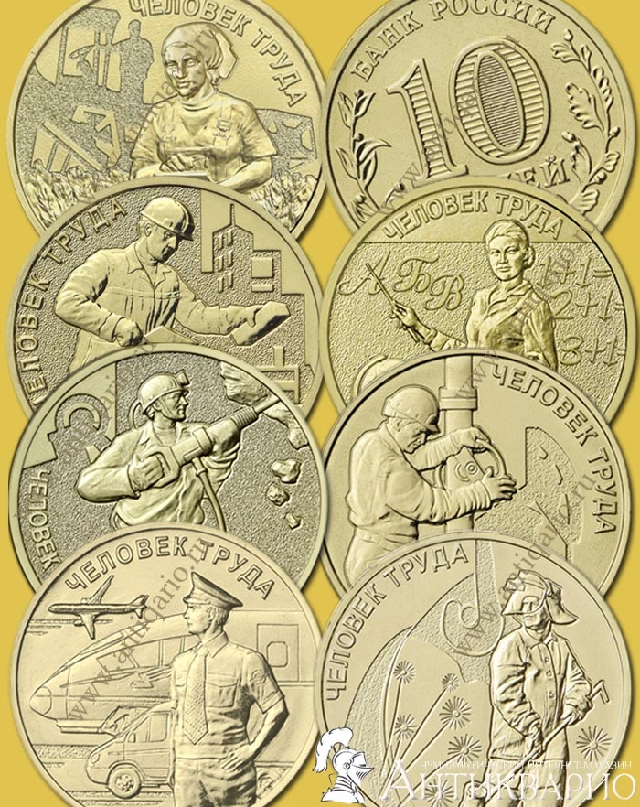Главная → Монеты → Юбилейные монеты России → Гальванические 10 рублей → Человек труда → Набор 7 монет человек труда 2020-2026