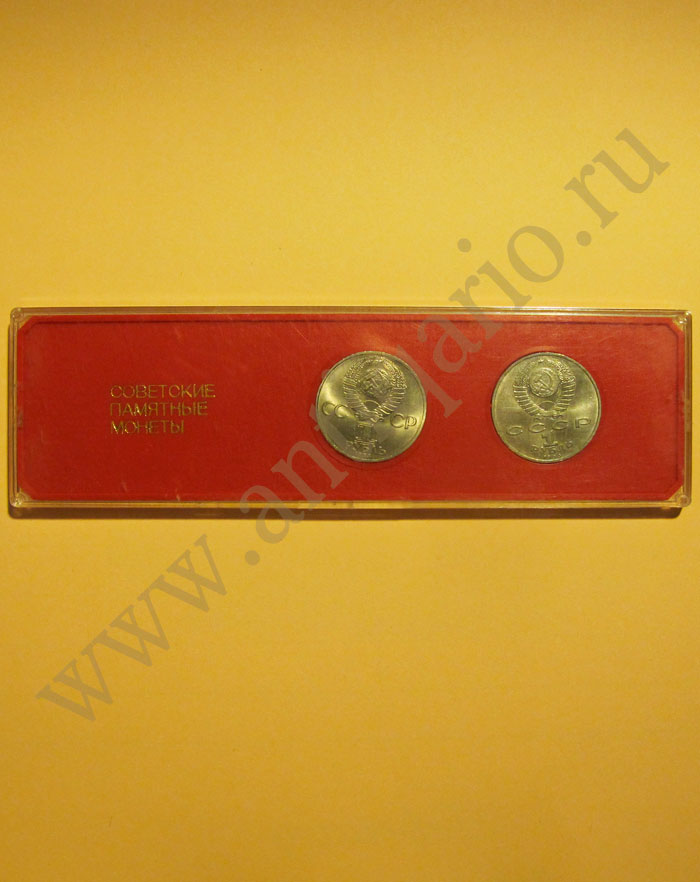 | В набор входит две советские памятные монеты: маршал СССР Г.К. Жуков (1 рубль 1983) и Карл Маркс (1 рубль 1990) Монеты вставлены в специальные ячейки планшета, который находится в пластиковом прозрачном футляре со съёмной крышкой. Есть возможность изменить набор монет, для этого нужно написать письмо с вашими пожеланиями в разделе контакты. |