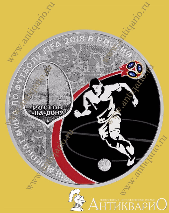 Главная → Монеты → Юбилейные монеты России → Монеты футбол Россия 2018 → Монета Ростов-На-Дону - 3 рубля 2018, серебро-925 / пруф (выпуск 2)