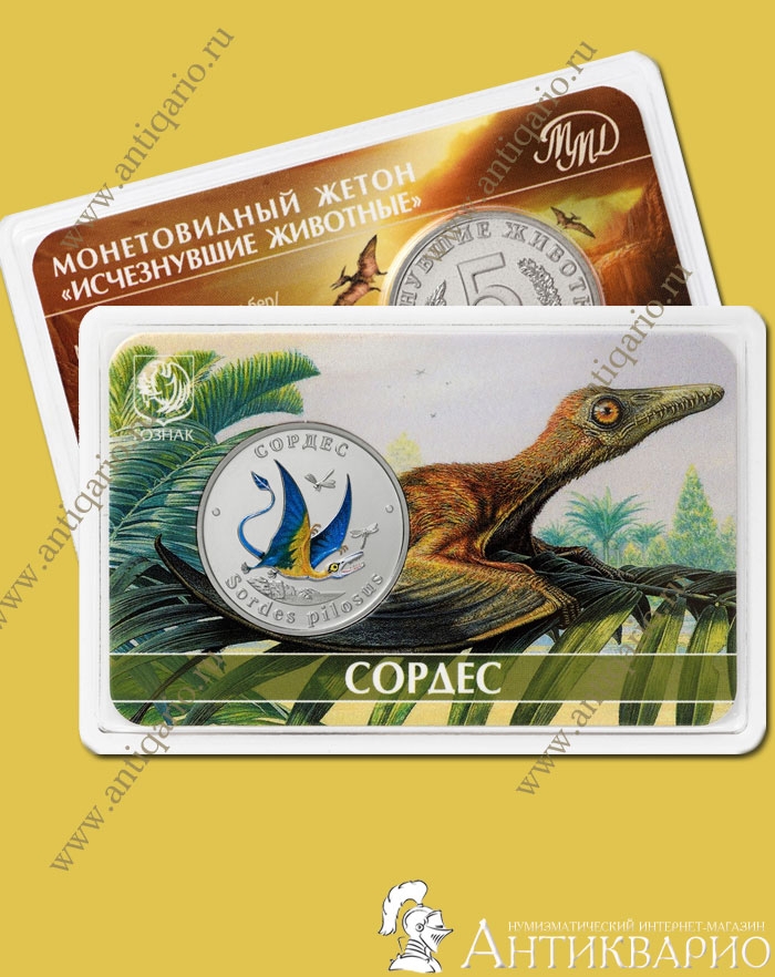 | Третий памятный жетон ММД серии «Исчезнувшие животные» – «Сордес» 2024 года выпуска. «Сордес» с латинского переводится как «Нечисть», но в жизни это животное не выглядело так ужасно, а было похоже на огромную летучую мышь с большим размахом крыльев. Характеристики жетона «Сордес» ММД 2024: