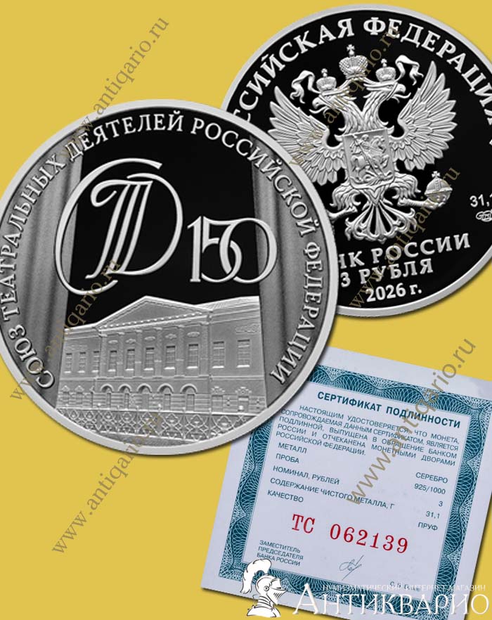 Название: Союз театральных деятелей (СТД) - 3 рубля 2026 / серебро, пруф