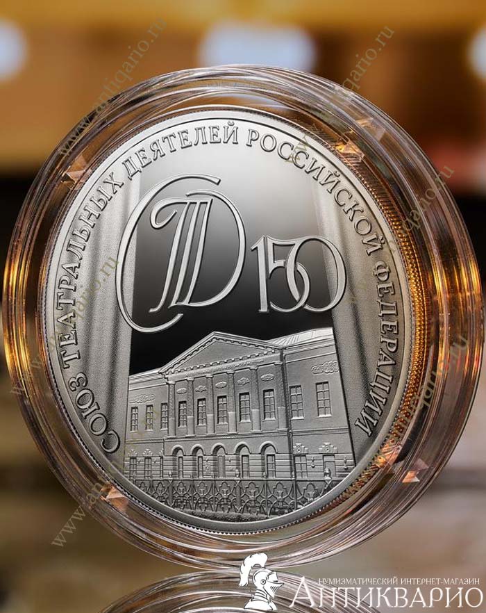 | Серебряная памятная монета Банка России номиналом 3 рубля «150-летие Союза театральных деятелей Российской Федерации» серии «Исторические события». Монета продается в банковской капсуле + обязательно прилагается сертификат подлинности! На монете расположены рельефное изображение здания Союза театральных деятелей Российской Федерации и выполненное в технике лазерного матирования стилизованное изображение театрального занавеса. Вверху и по окружности мы видим рельефные надписи: «СТД», «150» и «СОЮЗ ТЕАТРАЛЬНЫХ ДЕЯТЕЛЕЙ РОССИЙСКОЙ ФЕДЕРАЦИИ». Это не первая монета России, которая посвящена служителям театрального искусства. Так же выпущены две монеты из серебра (25 рублей) и золота (100 рублей): 250-летие Государственного академического Большого театра России. Эти две монеты тоже в наличии и можно купить в нашем нумизматическом магазине. Характеристики монеты 3 рубля Служителям театрального искусства: